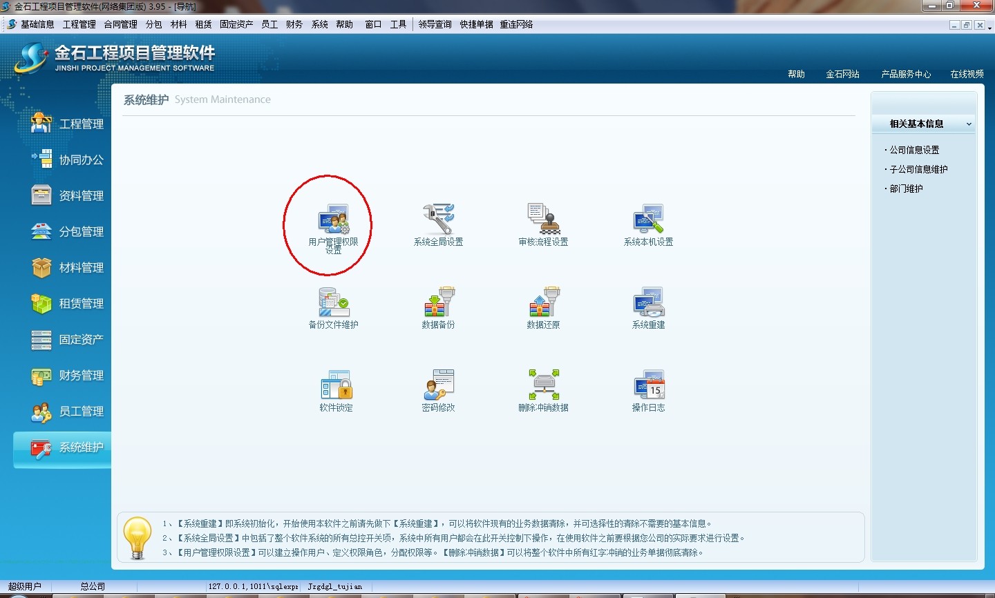 金石軟件用戶權限設置