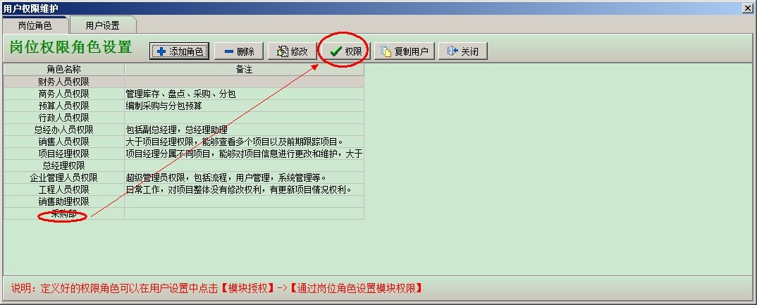 設置采購部這個角色的【權限】