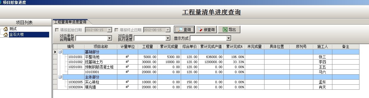 工程進(jìn)行過程中,總公司可以隨時(shí)查詢工程量清單