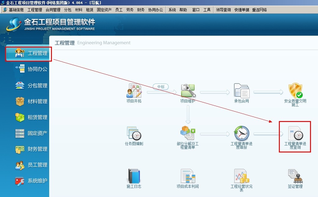 打開工程量清單進(jìn)度查詢
