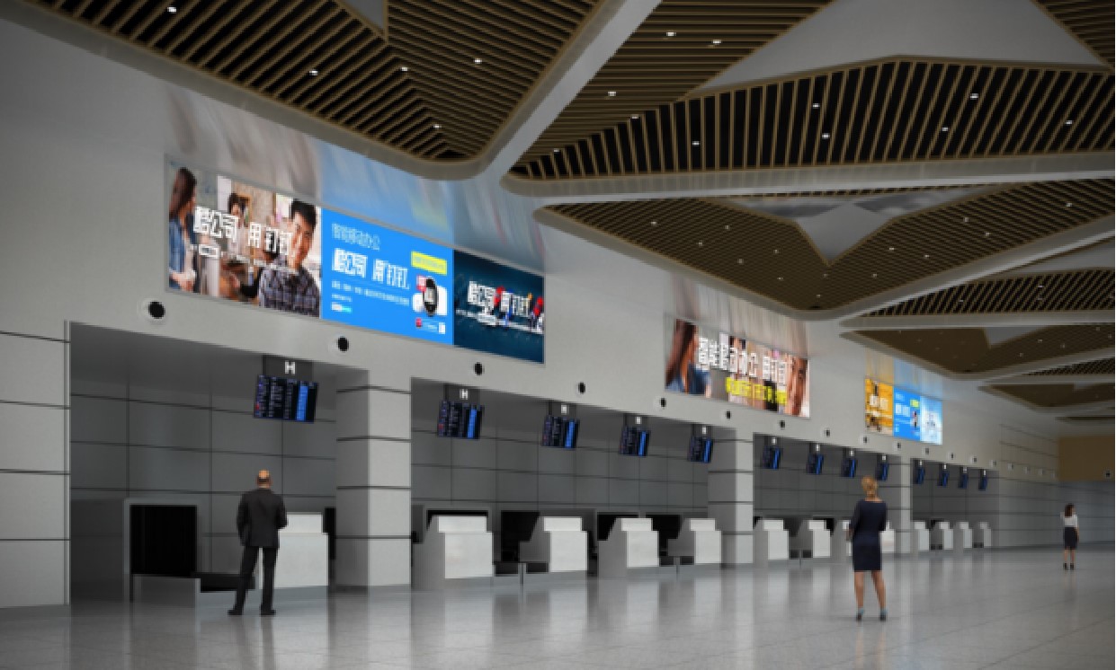 候機廳是旅客必須經(jīng)過且停留 時間較長的區(qū)域,人流密集,媒體連續(xù)排列,風格統(tǒng)一,規(guī)格整齊。