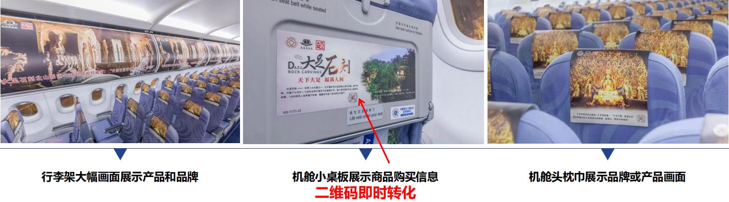 通過全方位的畫面包裹,全方位塑造品牌形象在飛行途中強(qiáng)化旅客對產(chǎn)品和品牌的印象。
