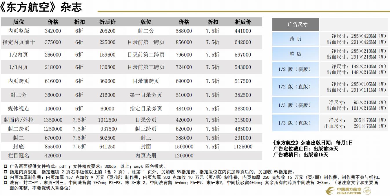《東方航空》完全覆蓋東航全部國內(nèi)國際航班,全艙發(fā)行,閱讀人群,以上海為樞紐,重點輻射華東區(qū)域人群,延伸到中國乃至全球絕大多數(shù)首都以及旅游城市。