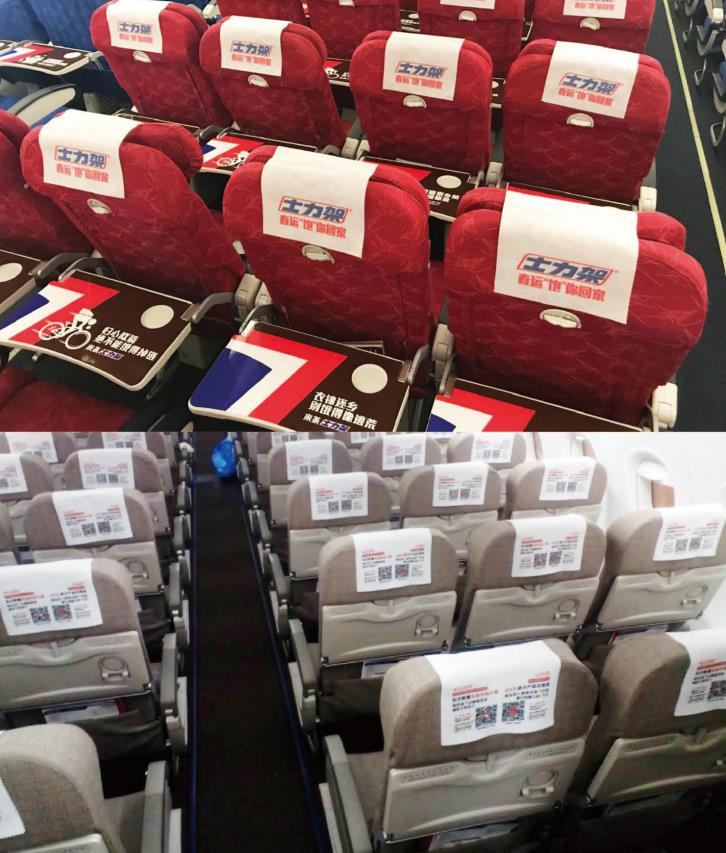 機上小桌板是每位航空旅客必用設(shè)備,易于引起旅客注意,廣告創(chuàng)意空間大,易于通過二維碼與受眾互動,加深對廣告內(nèi)容的印象。