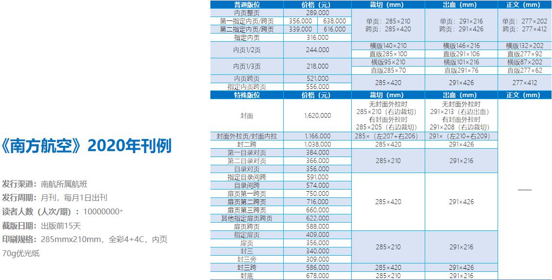 每天覆蓋25000余名南航明珠金卡/銀卡會員、南方航空頭等艙、商務艙旅客。