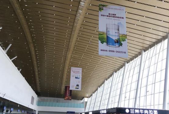 庫爾勒機(jī)場廣告-庫爾勒機(jī)場出發(fā)大廳吊旗廣告