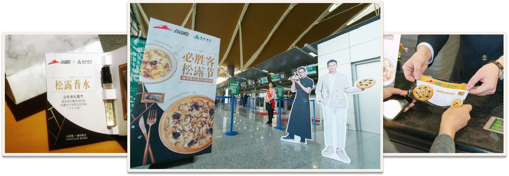 線下包括飛機噴繪、地推、機艙內(nèi)宣傳及機上活動,線上包括特價艙位投放、PC/APP專題、微信、短信投放等。
