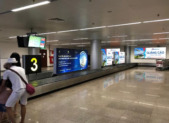 位置:越南峴港國際機場海關(guān)檢查口1樓LED廣告屏正面出入境區(qū)