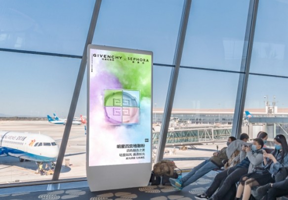 在機(jī)場廣告媒體中,機(jī)場刷屏機(jī)設(shè)置在旅客候機(jī)區(qū)、安檢區(qū)、登機(jī)口等人流量密集且停留時(shí)間較久的位置,并且在整個(gè)航站樓中,刷屏機(jī)分布矗立在各個(gè)區(qū)域,能夠很好的滿足上述的“C位”和“霸屏”需求。