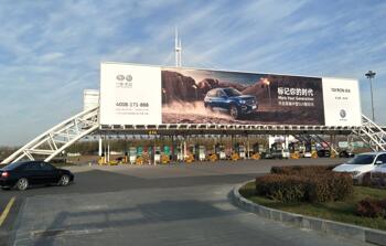 廣告位置:機場停車場收費站出入口 正迎面 廣告編號:SY-LM03 廣告規(guī)格:10m×60m×2面=1200m2 數量:1 廣告形式:收費站龍門 媒體價格:1360萬元/年/座 |