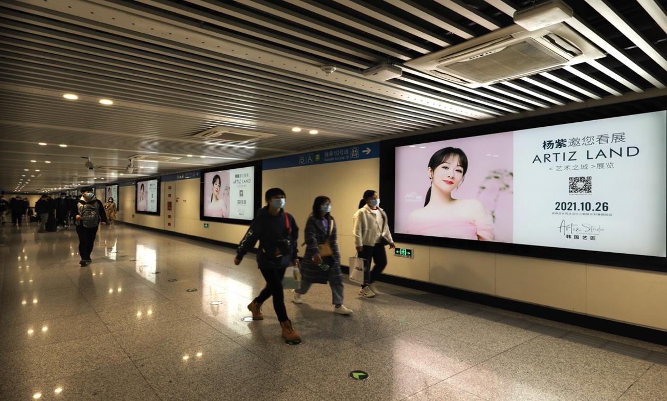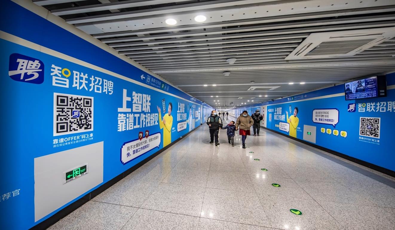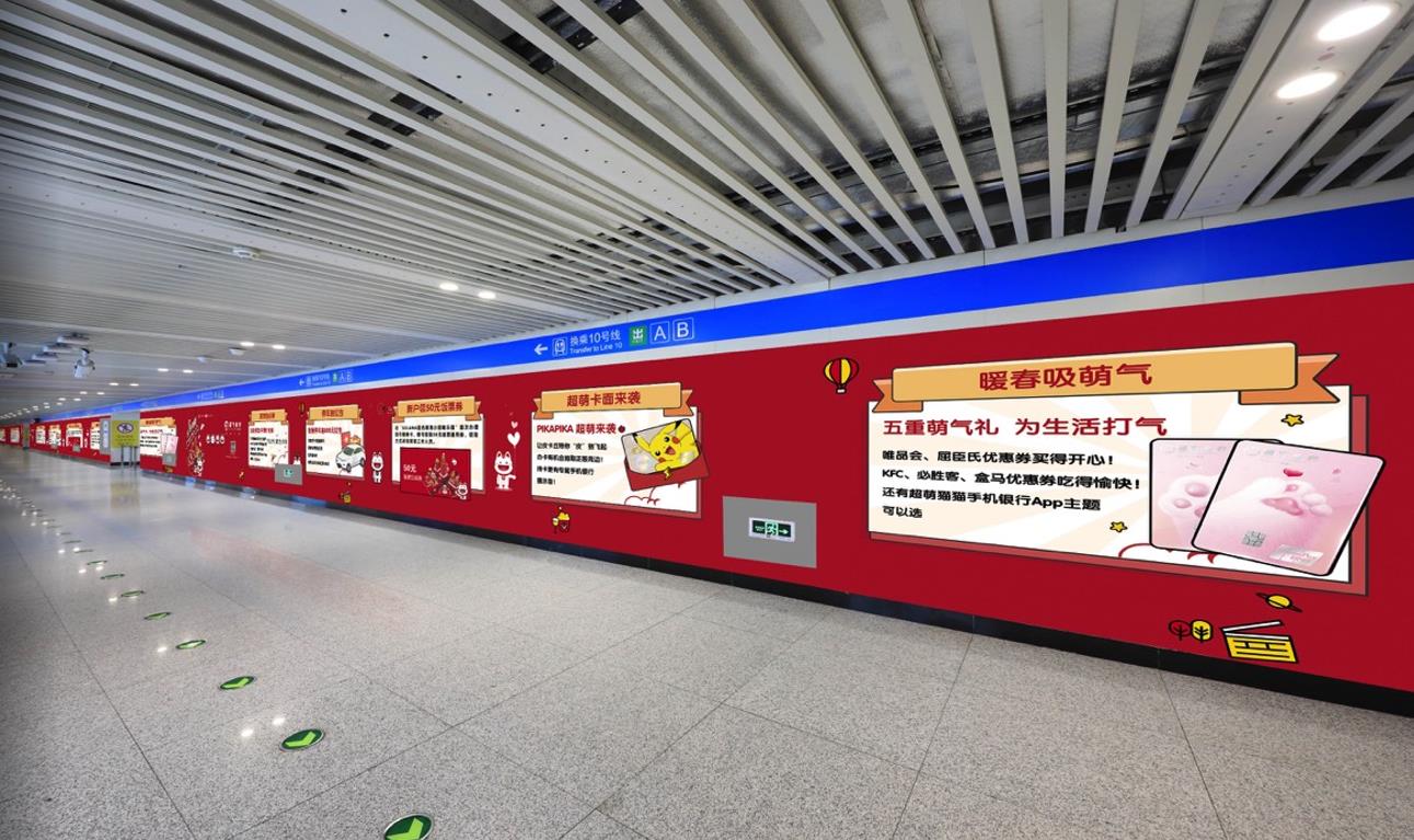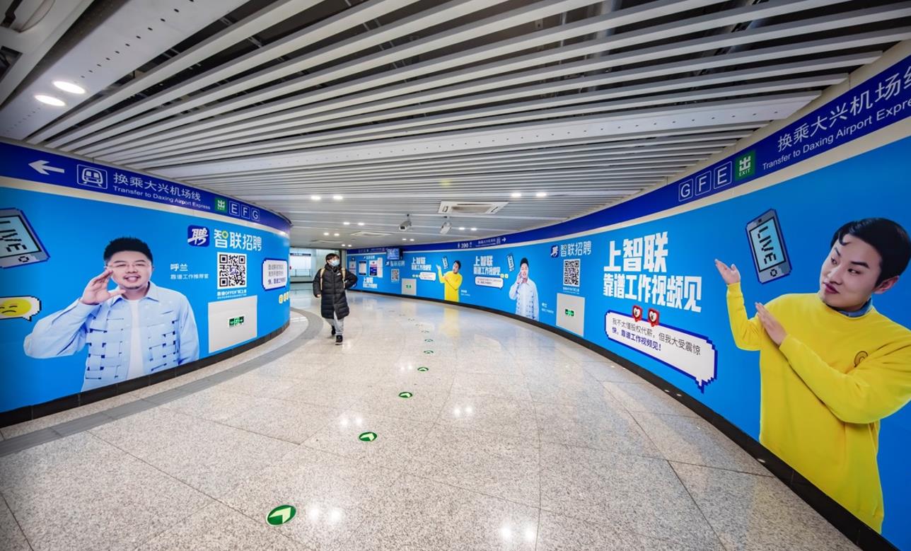 通道內(nèi)客流密集,超大幅面墻貼畫(huà)面伴隨乘客一路前行,廣告觸達(dá)時(shí)間長(zhǎng),有效保證品牌傳播