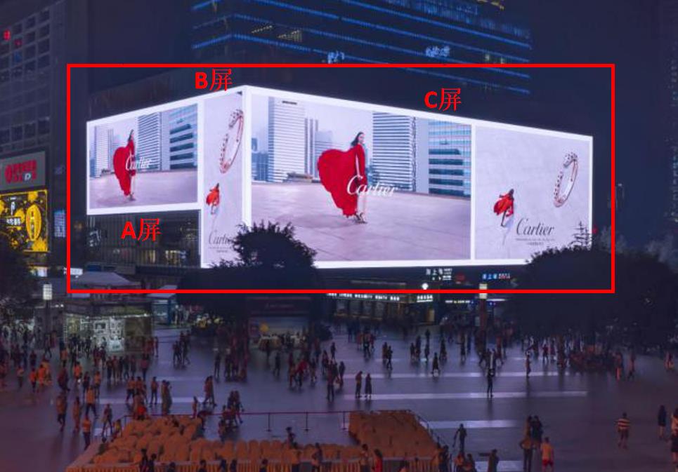 | 重慶江北區(qū)觀音橋商圈中心---蘇寧超級旗艦店LED巨幕 媒體位置:重慶江北區(qū)觀音橋商圈中心蘇寧超級旗艦店LED巨幕 亮燈時間:8:00-22:00 媒體數(shù)量:3塊 媒體尺寸: A屏:56.32m(w)×18.56m(h)=1045.3㎡ B屏:12.80m(w)×9.60m(h)=122.88㎡ C屏:91.84m(w)×28.16m(h)=2586.21㎡ 像素/分辨率: A屏:5632(w)×1856(h) B屏:1280(w)×960(h) C屏:9184(w)×2816(h) 時長、頻次及廣告間隔:15秒,60次/天,間隔14分鐘 刊例價: 15秒60次 ,RMB 68萬/周 30秒60次,RMB98萬/周 包屏 RMB68萬/小時 |