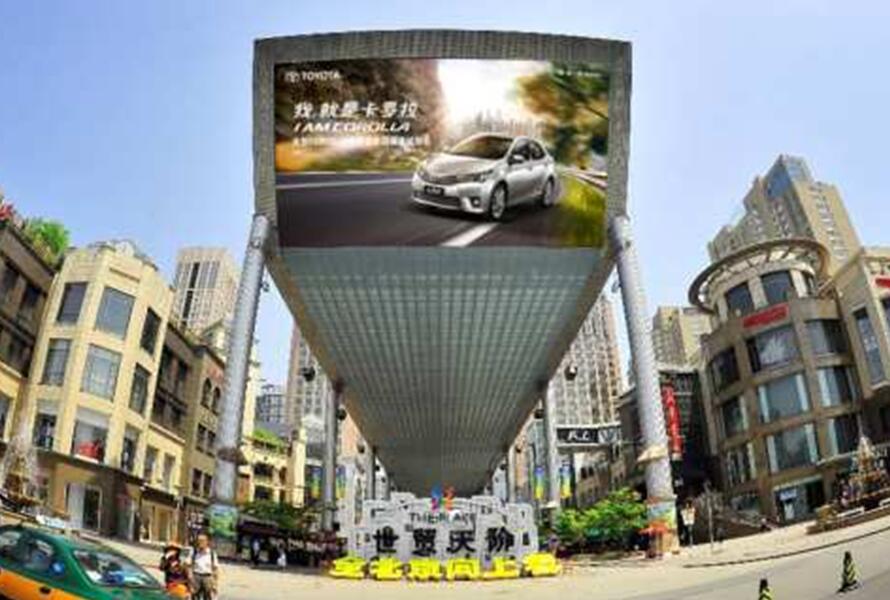 戶外LED大屏的投入成本較低,投放效益也較為顯著。由于戶外LED大屏使用條件較好,對于環(huán)境干擾的降低和對建筑安全的保護,以及廣告主選擇戶外廣告方式的自由度更高,目前主流的戶外 LED顯示屏在很多城市當(dāng)中都有應(yīng)用。
