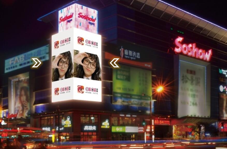 超大環(huán)形巨幕傳播無死角、零距離觀看超強視覺沖擊、頂級商圈最繁華十字路口
