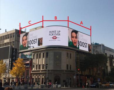 播放時間:7:00 - 23:00;媒體規(guī)格:31.6米(寬) x 12.7米(高)=402平方米