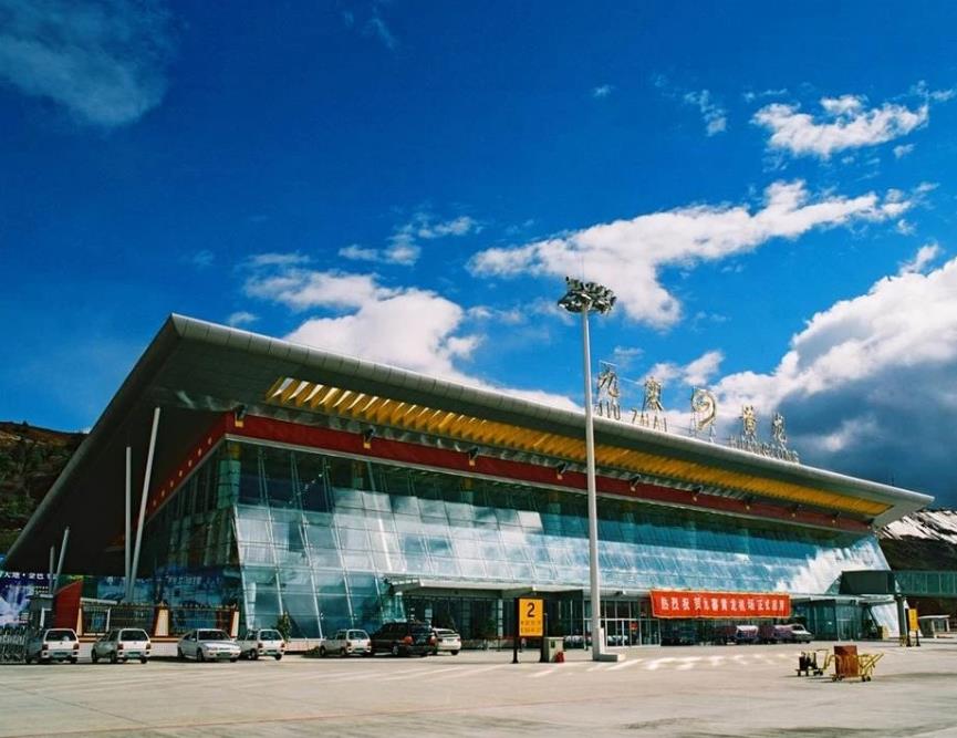 九寨黃龍機場,2003年建立,位于四川省阿壩州松潘縣境內(nèi)的川主寺鎮(zhèn)北約12公里處,是阿壩州的首個機場。