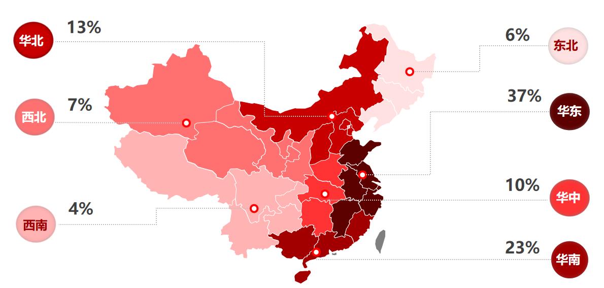 商超門店區(qū)域分布(持續(xù)增長中)