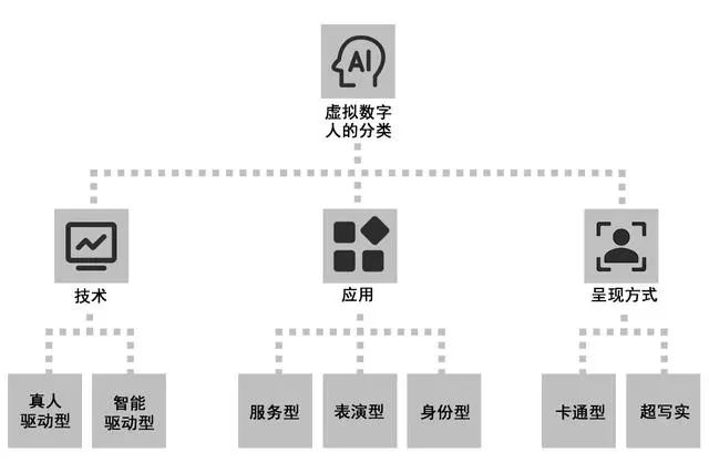 從應用層面,虛擬數(shù)字人主要分為服務型、表演型和身份型三大類。
