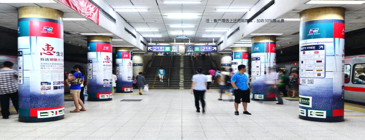 媒體優(yōu)勢(shì)與運(yùn)用: 復(fù)興門站是北京地鐵1號(hào)線與2號(hào)線的換乘站,客流量極大,臨近中國金融業(yè)最具影響力的金融中心區(qū)--金融街。站臺(tái)包柱不僅覆蓋本站乘客,大部分途經(jīng)復(fù)興門的乘客都可以形成一定印象,適合提升品牌形象。