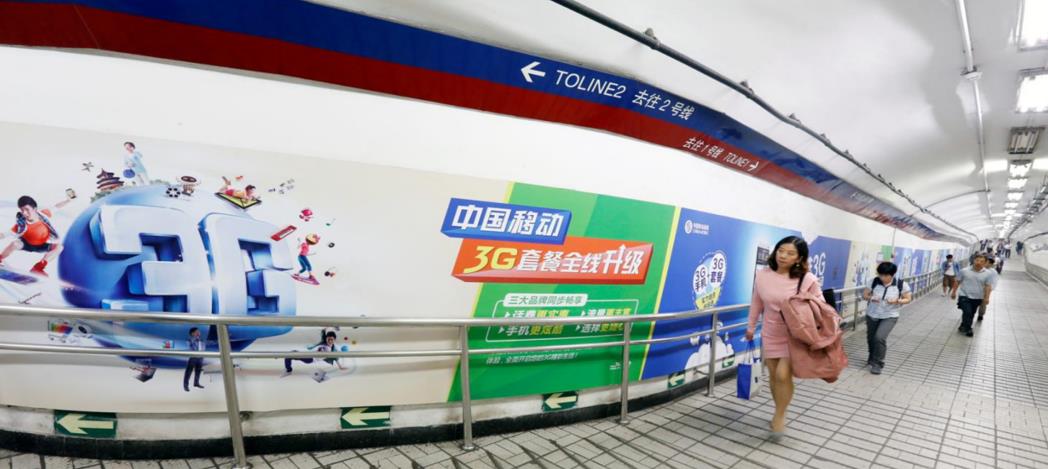 媒體位置:2號(hào)線復(fù)興門北換乘通道雙側(cè)墻貼 2號(hào)線復(fù)興門南換乘通道雙側(cè)墻貼