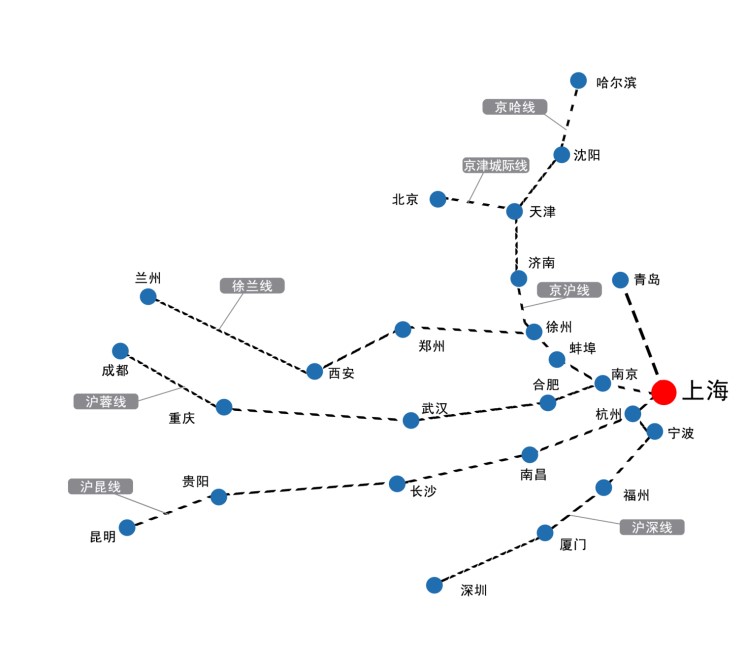 在運營時間內(nèi)平均不到2分鐘就有一趟高鐵到發(fā),比上海地鐵高峰發(fā)車間隔時間還短。其中,在上海和南京之間每天往返的高鐵有249趟,平均4.3分鐘就有一班。長三角地區(qū)形成了全國最為密集完善的高鐵網(wǎng),滬蘇浙皖三省一市41個地級以上城市中34個通了高鐵,動車組實現(xiàn)公交化開行“1—3小時生活圈”夢想變?yōu)楝F(xiàn)實。