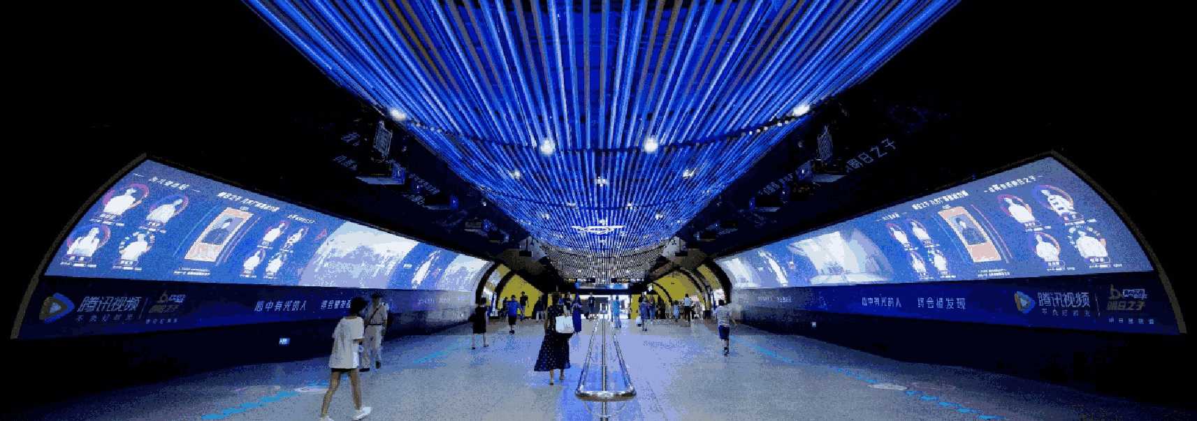 由 電子屏 與 超級動(dòng)感燈箱,相互交錯(cuò)組成的電子媒體通道,大面積的靜態(tài)海報(bào)與高精度的動(dòng)態(tài)畫面不斷沖擊乘客視覺;頂部天花板與通道內(nèi)柱體的鏡面環(huán)境設(shè)計(jì)從空間上帶來沉浸式的3D體驗(yàn);每個(gè)區(qū)域的定向音響環(huán)繞聲系統(tǒng) 從聽覺上刺激乘客的感官體驗(yàn) ,日均客流達(dá)55萬*人次 支持動(dòng)畫、TVC、電子海報(bào)等,可制作各種大型創(chuàng)意效果