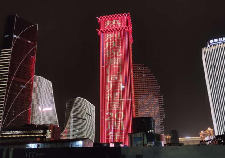 珠海地標(biāo)廣告,珠海橫琴國(guó)貿(mào)大廈樓體燈光秀廣告,珠海燈光秀廣告,萬(wàn)事成傳媒