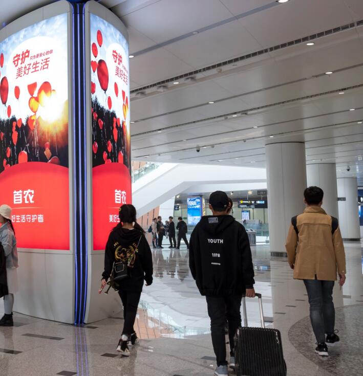 媒體分析: 軌道交通必經區(qū) 100%覆蓋乘坐地鐵和高鐵往來機場的人群。面向地下一層值機區(qū),雙面呈現聯(lián)排布局,在人群前往值機、值機后前往安檢的路徑上形成必經必視、多次曝光的傳播效果。