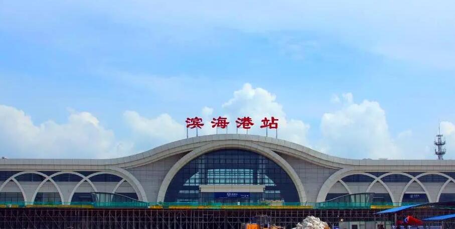 濱海港站是國家“八縱八橫鐵路網(wǎng)”沿海鐵路中青鹽鐵路的一個(gè)中間站,位于江蘇省濱海縣東坎街道醫(yī)藥產(chǎn)業(yè)園附近,距縣城4.5公里,所處里程為青鹽線353km664m。青鹽鐵路濱海港站站房分為候車大廳、出站廳和售票廳,左右兩側(cè)為設(shè)備辦公用房,中部為單層候車大廳,建筑面積10061平方米,建筑總高度16.57米,站臺(tái)全長550米,總投資1.6億元。站房前是一個(gè)帶公園式的站前廣場(chǎng),功能齊備,將充分滿足市民日常的出行。車站設(shè)計(jì)旅客日均發(fā)送量為2000人次,遠(yuǎn)景規(guī)劃為10000人次,為中型鐵路客站。