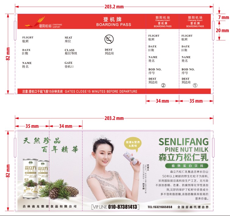 登機(jī)牌廣告尺寸:203.2mm?82mm