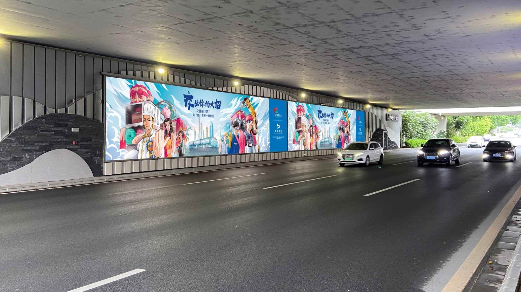 ①機(jī)場航站樓前,飛機(jī)滑行橋下兩側(cè)橋身墻體 。