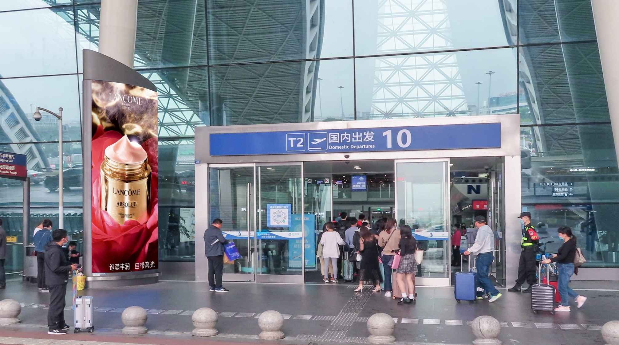 廣告位置:T2航站樓二層國內(nèi)出發(fā)廳大門入口處