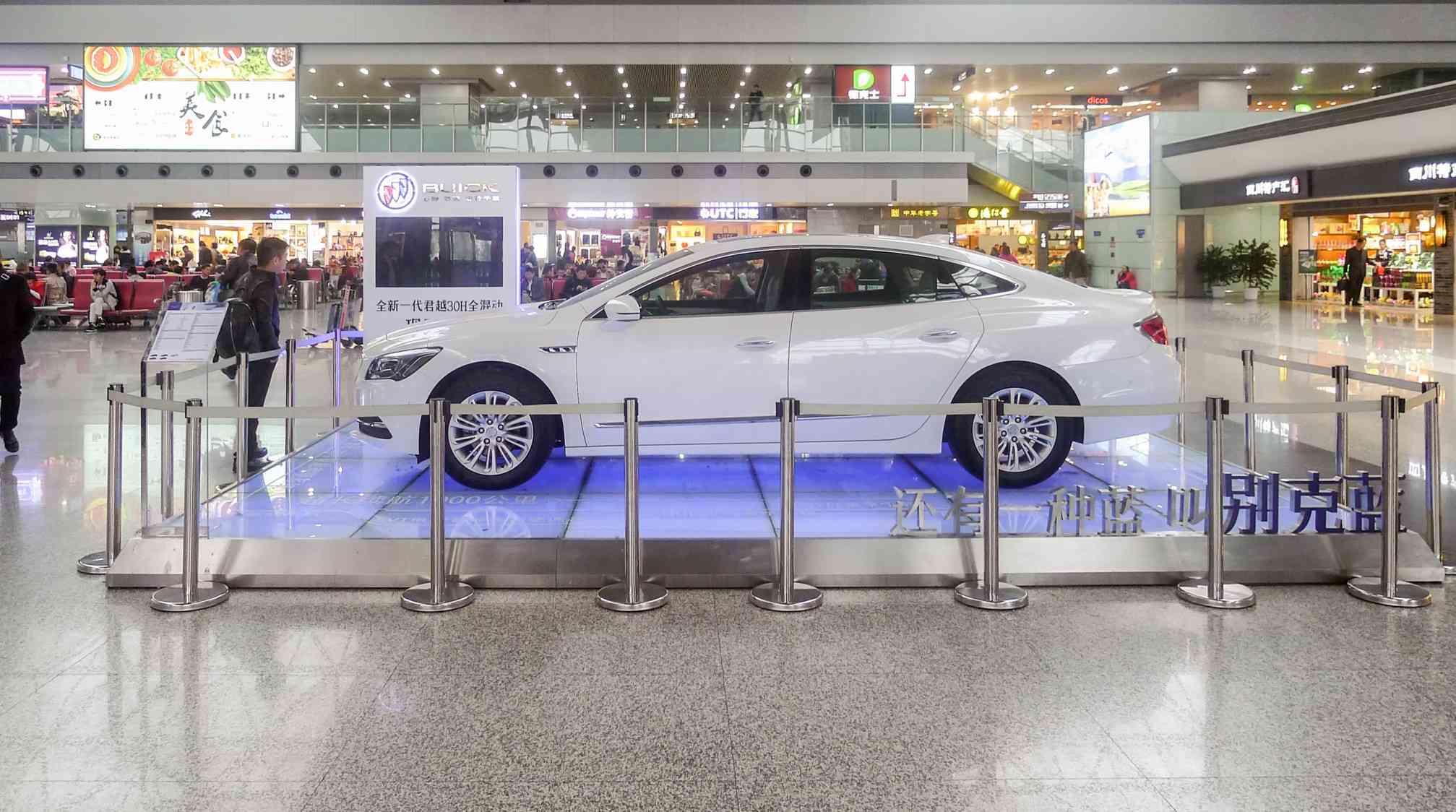 ①T2航站樓二層出發(fā)候機(jī)區(qū)域(旅客行走方向正迎面)