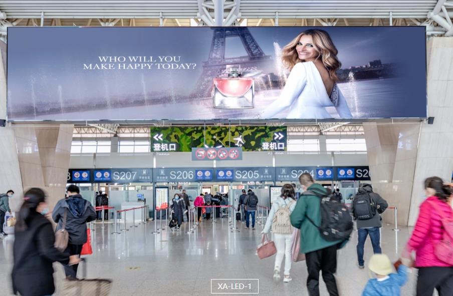 西安咸陽機場廣告-西安咸陽機場T2航站樓出發(fā)值機大廳led廣告