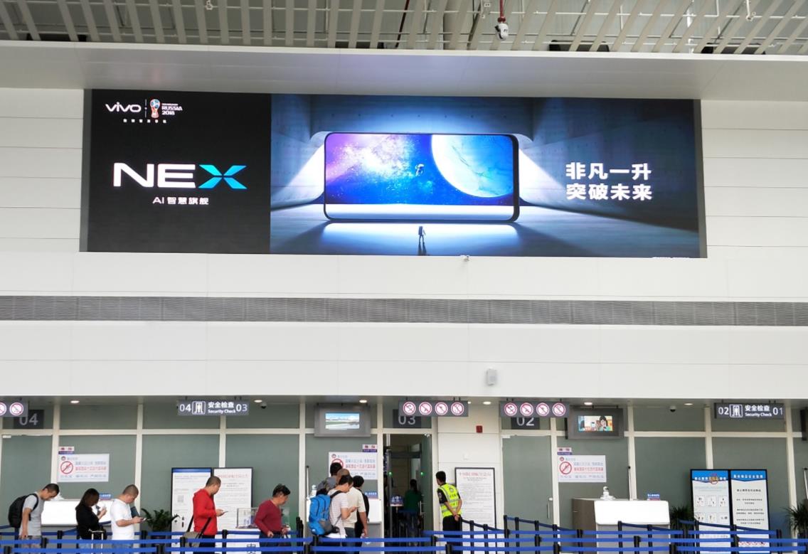 興義萬(wàn)峰林機(jī)場(chǎng)T2一層出發(fā)安檢口led廣告,萬(wàn)事成傳媒