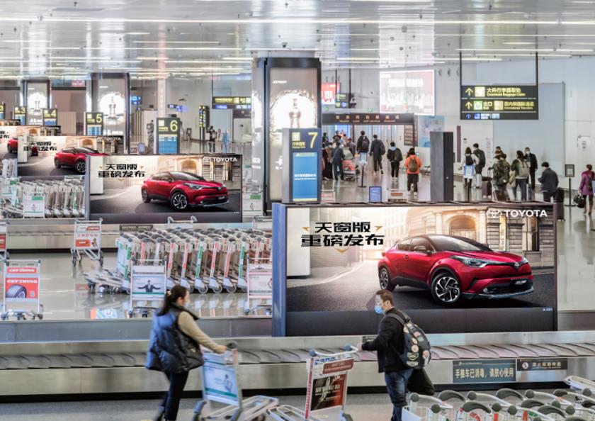南寧吳圩機(jī)場國內(nèi)到達(dá)行李轉(zhuǎn)盤上方LCD拼屏廣告