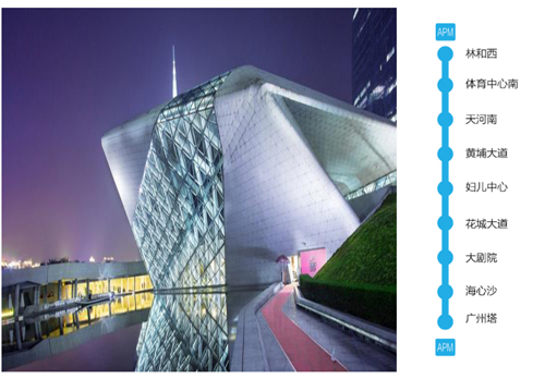 APM線 ——城市中軸觀光線:APM線為全地下、全封閉、無人駕駛的短線客運系統(tǒng),承擔珠江新城核心區(qū)的交通疏導功能。線路整體呈南北走向,總長約3.94公里,沿途串起廣州塔、海心沙、珠江新城與天河商貿區(qū),實現(xiàn)林和西至廣州塔之間的短距離軌道快速通行。其中,黃埔大道至歌劇院站更是與廣州新中軸的花城廣場地下建筑連通,形成與地面各大商貿建筑的無縫鏈接。