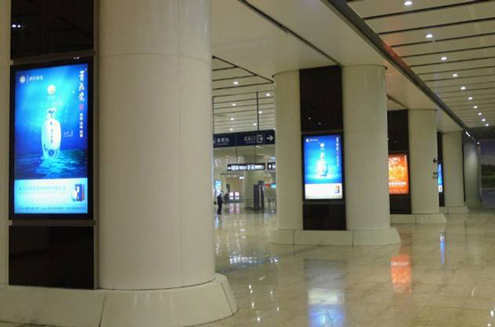 北京南站地下一層換乘到達區(qū)廣告媒體包含:360柱面燈箱廣告、柱燈面箱廣告、換乘圖騰燈箱廣告、半包柱燈箱廣告、到達通道燈箱廣告、停車場夾層通道燈箱廣告、中庭超薄拉布燈箱廣告、出租車通道燈箱廣告、出租車等候區(qū)滾動燈箱廣告、出租車等候區(qū)通道燈箱廣告、到達口吊裝燈箱廣告、玻璃幕墻媒體廣告。30種媒體形式自由組合,豐富的視覺效果,無可比擬的視覺沖擊力。