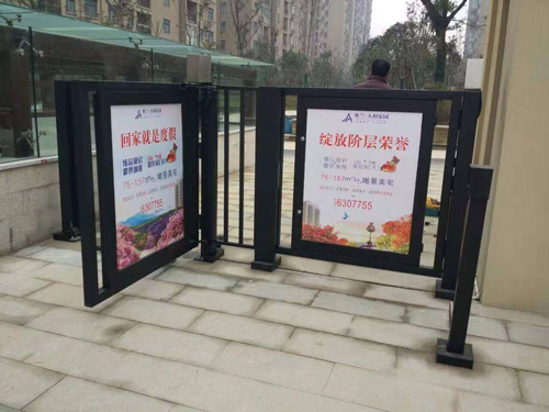 其社區(qū)門(mén)禁廣告主要用于社區(qū)出入大門(mén)口、商業(yè)區(qū)出入大門(mén)口等一起需要控制人流出入的場(chǎng)所,因其在傳統(tǒng)的鐵藝門(mén)上增加了獨(dú)特廣告燈箱,其夜間獨(dú)特的燈光效果。