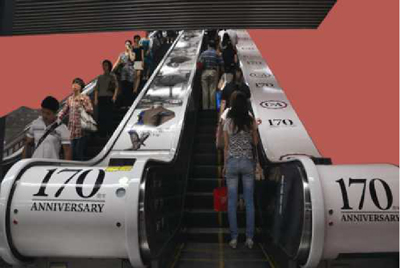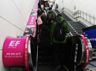地鐵扶梯產(chǎn)品形式:分布在地鐵出入站口及站內(nèi)通道,扶梯面板巨幅畫面,適合展示品牌形象,完美詮釋產(chǎn)品功能訴求;扶梯扶手帶跟隨受眾移動(dòng),不可比擬的廣告親和距離。