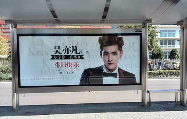 吳亦凡生日,粉絲群集力在北京的廣順南大街、雙井橋西、清華附中、清中關(guān)村北大街以及上海地區(qū)同濟大學(xué)、上海大學(xué)、松江大學(xué)城、浦東大道等站點的燈箱廣告牌和地鐵看臺廣告牌投放生日廣告。