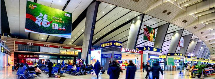 ?媒體位于候車大廳南北兩側(cè),全方位,立體式媒體,絕佳位置,人流量大,將南北進(jìn)出站口、扶梯以及乘車安檢的所有客流完美有效覆蓋;