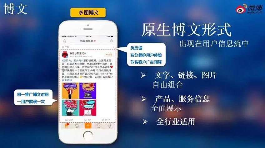 微博廣告類型很多,如開屏貼片廣告、信息流廣告、賬戶推廣、板塊植入、關(guān)鍵詞廣告等,以不同的方式呈現(xiàn),具有不同的特點和優(yōu)勢。