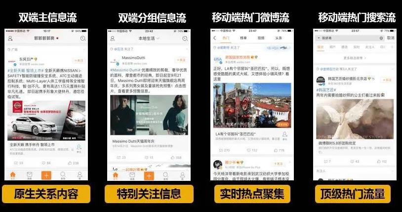 3.流量大,到達(dá)率高。微博等內(nèi)容信息用戶數(shù)量大,目的是獲取信息。用戶使用這些應(yīng)用程序的頻率相對較高。在各種信息流中插入類似形式和風(fēng)格的廣告更容易被用戶刷。