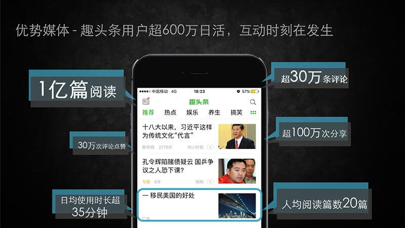 原創(chuàng)內(nèi)容:通過與媒體和PGC的合作,趣頭條獲得原創(chuàng)內(nèi)容。