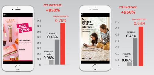 根據官方給出的數據,使用Shadowfence的廣告點擊率是行業(yè)平均值的10倍左右,比利用Geofence(地理圍欄)的廣告效果也高出20%-30%。