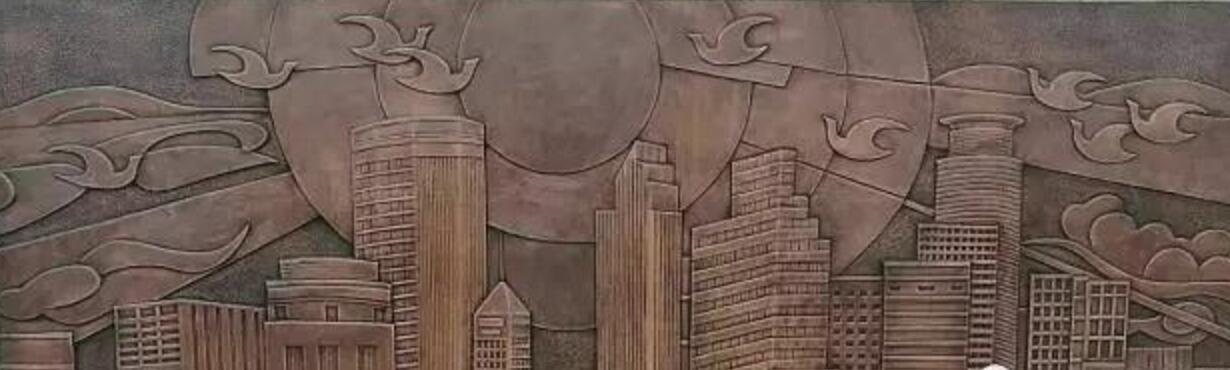 雕塑底座為浮雕,整體設(shè)計(jì)思路是前“未來”、后“現(xiàn)在”、左“人”、右“文”。即:正前方以高鐵、公路、科技、建設(shè)等畫面表現(xiàn)高碑店的未來;后方以建筑、陽光、飛鳥、祥云等表現(xiàn)現(xiàn)在和諧幸福的高碑店;