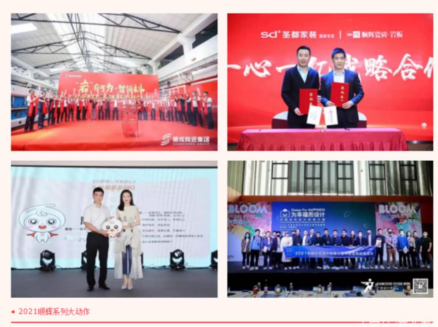 2021年,對于順輝人來說,是充實而忙碌的一年。3月,集團第5條巖板智能生產(chǎn)線點火投產(chǎn),為全年巖板銷售提供強有力的保障;4月,順輝瓷磚·巖板攜手圣都家裝簽署“一心一億”戰(zhàn)略計劃,深耕整裝/家裝設(shè)計師渠道取得重要成果;5月,“516超級品牌日”啟動,李冰冰親臨助陣,引爆全網(wǎng)億+流量,品牌知名度與影響力得到進一步提升;隨后,與廣州設(shè)計周合作發(fā)起的《為幸福而設(shè)計——中國住宅設(shè)計效果大賽》在全國80多個重點城市落地,通過舉辦系列城市沙龍與論壇游學(xué)活動,成功與全國五湖四海的設(shè)計師實現(xiàn)鏈接。一系列的大動作讓順輝品牌在整裝/家裝設(shè)計師渠道實現(xiàn)流量轉(zhuǎn)化,助力業(yè)績倍增!
