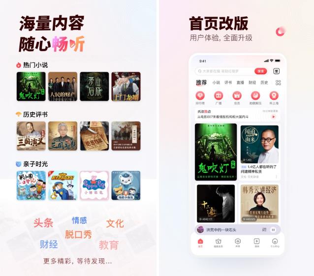 聽(tīng)書、聽(tīng)課、聽(tīng)段子,6億用戶的選擇! 郭德綱、馬東、吳曉波,盡在耳邊! 通勤、堵車、失眠,好無(wú)聊?快來(lái)聽(tīng)點(diǎn)有料的!