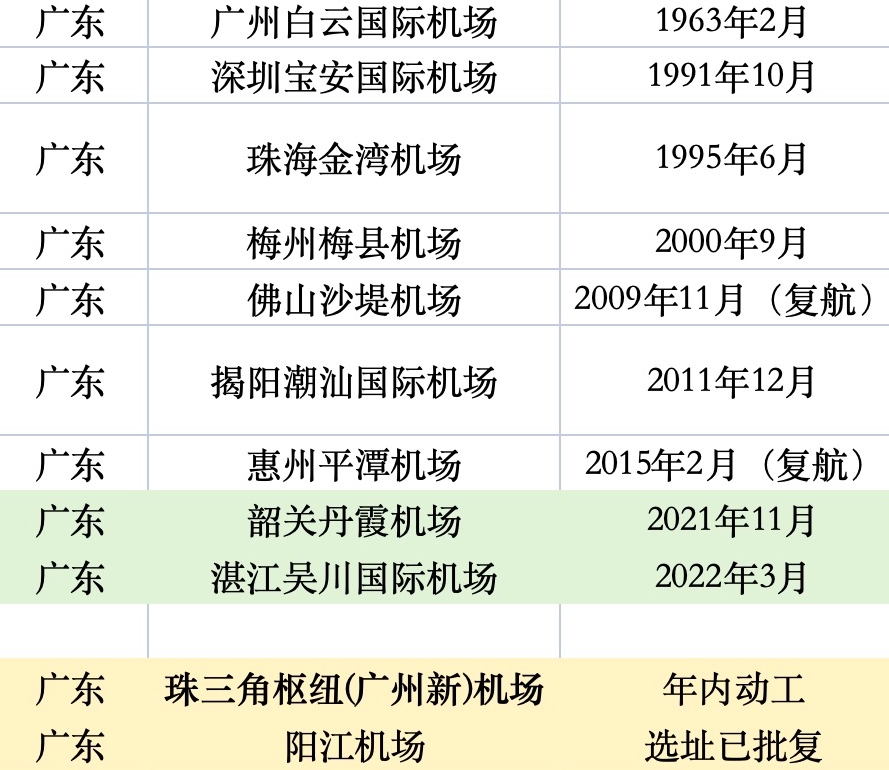 根據(jù)公告,陽江機場力爭在2025年開工建設。加上預計在年內(nèi)動工的珠三角樞紐(廣州新)機場,經(jīng)濟大省廣東將擁有11個民用運輸機場。此外,至少還有5個機場的前期研究工作正在開展。